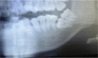 下顎8番の水平埋伏はしばしば見かけますが、図に示したような7番の水平埋伏もまれにあります。このようなケースの治療について情報交換を行いたいと思います。